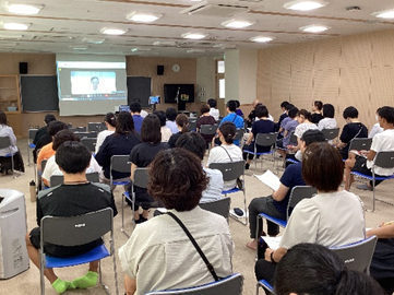 本校の桑島愛子看護師を講師に、「本校における医療的ケアの実際と学校看護師」という演題で実施しました。