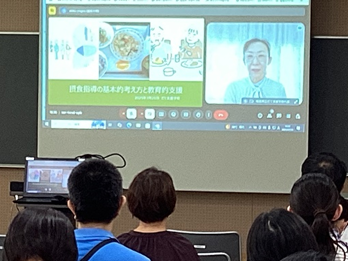 7月25日(金)、「摂食指導の基本的考え方と教育的支援」を演題として、千木良デンタルクリニックの千木良あき子先生にリモートによる講演をしていただき、給食を楽しく安全に食べるための工夫や積み上げの大切さ等についてお話をしていただきました。食べるときの姿勢や食形態、支援の方法や、食の偏りへの対応についても、詳しくお話していただき、児童生徒にとって給食は、経験値を増やすための大切な時間であることを再認識した講演でした。