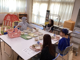 高等部では、グループに分かれての数学の学習や生活単元学習の授業を参観していただきました。数学では、実際に体験したことをもとに考えたり、表現したりする姿が見られました。