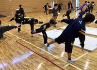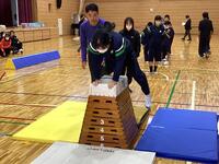 10月29日(火)「アスリート派遣等による体育行事等の充実・高度化の促進事業」の一環として、講師に中里隆太先生をお迎えし、体育の授業を行いました。今回は器械体操の跳び箱運動の内容でした。始めに準備・基礎運動として、ストレッチ等を行い、実演を交えて跳び箱運動に取り組みました。講師の先生から身体の動かし方の助言や補助をしていただきながら活動することで、短い時間に上達する姿が見られました。授業を通して、興味関心をもって活動したり、できた嬉しさを味わい、挑戦する気持ちをもったりすることができました。