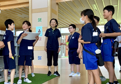 最初は緊張していた子どもたちですが、自己紹介でお互いのことを知って、学校探検&クイズでかかわり合う中で少しずつ表情もほぐれ、会話や笑顔も増えてきました。いつも一緒に過ごしている小学部の友だちとは違う存在に視線や思いを向け、自分なりに受け入れたりかかわったりする姿が多くみられました。