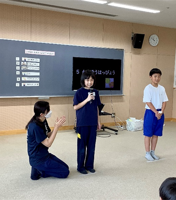 4月24日(木)に入学おめでとう会を実施しました。新入生・転入生は自己紹介をし、名前や好きなものをみんなの前で発表しました。2・3年生は装飾づくり、4・5年生はプレゼントづくり、6年生は司会を頑張りました。みんなでダンスを踊ったりバルーンをしたりし、とても温かく楽しい雰囲気で新入生・転入生を迎えることができました。