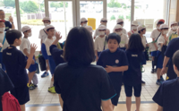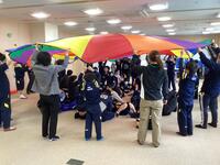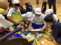 体育館でグループに分かれて自己紹介をした後、学校探検を行いました。初めは緊張していた様子でしたが、協力して校舎内にあるキーワードを探しているうちに打ち解け、体育館に戻ってから一緒に合言葉を完成させました。最後に全員で手話を交えながら『虹』を歌いました。ともに学ぶことで、新しい気付きをお互いに得ることができたと思います。
