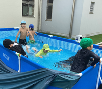 暑さは続いているものの、プールに吹く風や空に浮かぶ雲からは少しずつ秋を感じられるようになりました。夏の遊びを楽しみながらも、季節の変化に子どもたちも気付いてほしいと願っています。