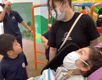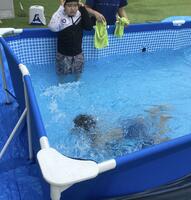 2学期が始まりましたが、暑い夏はまだまだ続いています。生活の中で季節を感じてもらいたい、とのねらいもあり、2学期も中庭に設置したプールでの水遊びを子どもたちは楽しんでいます。跳びはねたり、水しぶきをあげたり、それぞれに水の感触を全身で感じる様子が見られます。「夏休みにできるようになった」と、水に顔をつける姿を披露してくれる子どももいました。