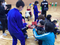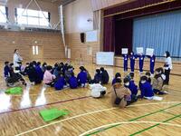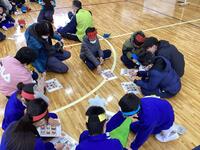 今回は節分をテーマに、クイズやフルーツバスケット、ビンゴでグループごとに活動しました。活動の中では、大田小の児童がクイズやビンゴカードを用意したり、両校でオニのお面を交換してかぶったり、声を掛け合いながら活動する姿も見られ、3回目で互いの交流も深まってきたと感じました。最後にはプレゼントの交換も行われ、嬉しそうな笑顔が体育館に広がりました。