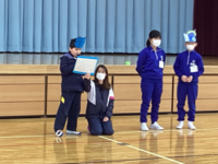 会の中では、6年生のこれまでの成長の様子が紹介され、この1年間だけでなく小さい頃からの成長をみんなで感じることができました。また、心のこもったメッセージカードや記念品が在校生から贈られたり、全体で「トゥモロー」や校歌を歌ったりして、6年生の笑顔があふれる会となりました。6年生からもお礼のあいさつがあり、お互いに感謝の気持ちを伝え合うことができたと思います。