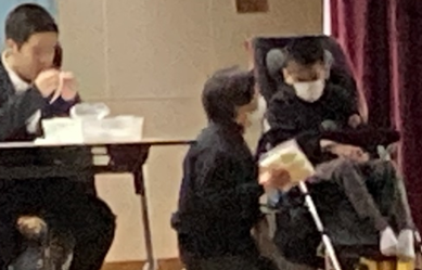 中学部1・2年5組は、1年女子1名、2年男子1名の訪問学級です。週に3回、家庭での訪問授業やスクーリングを設定して学習しています。