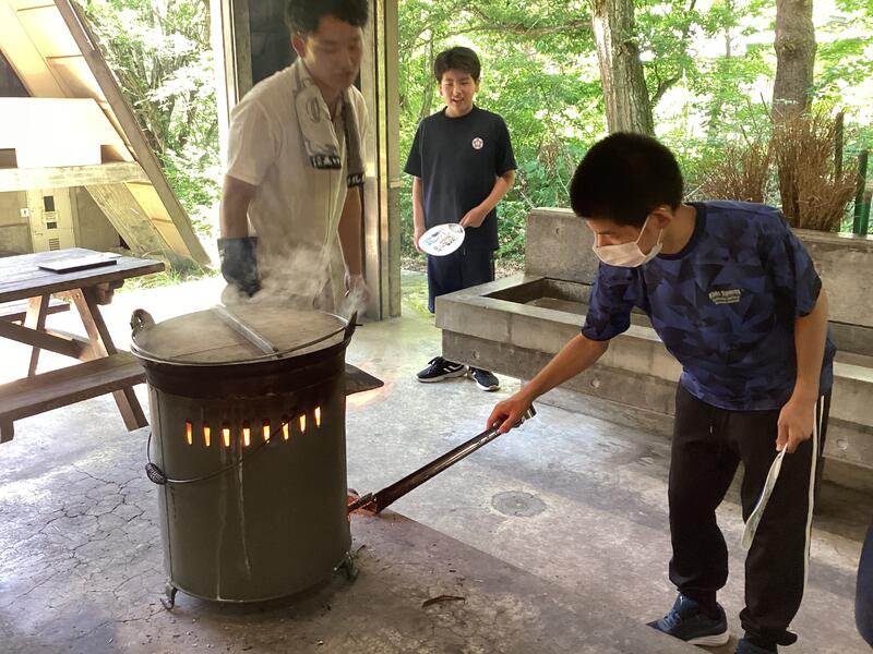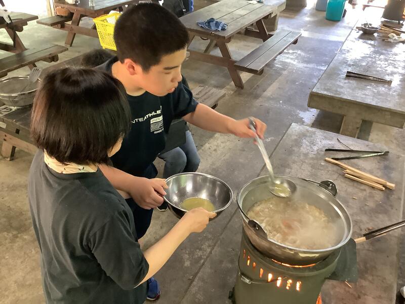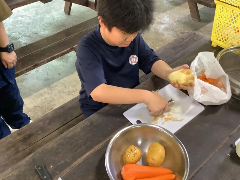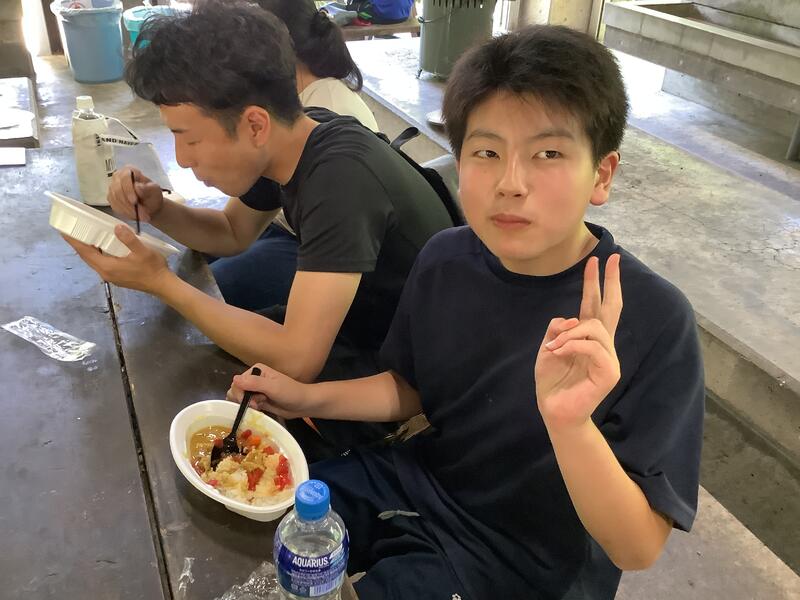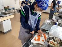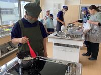 1年2組は男子4名の学級です。学校生活にも慣れてきて、お互いに思いを伝え合いながら日々を元気に過ごしています。7月4日は、職業家庭科の学習でカレー作り行いました。1年1・2組と3年1組で班を作り、協力しながら作りました。甘口、中辛口、辛口の3種類の味を作って食べ比べるなどかかわりながら楽しく活動することができました。玉ねぎは学校で収穫したものを使用しました。