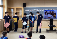 7月17日(水)第2回学部集会が行われました。今回は、2年生が宿泊学習の思い出の発表をしました。また、音楽の授業で演奏したVTRを鑑賞しました。第2回ボウリング大会も開催し、2チームに分かれて競い合いました。結果は赤チームが優勝しました。僅差で青チームが負けてしまいましたが、全員で楽しく活動することができまいた。